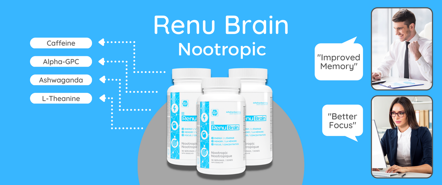 Renu Brain was designed to assist those putting in the extra hours. However, all this hard work increases the chances of burning out, or what we call "brain fog." To prevent this from happening we selected specific ingredients to alleviate the hazy mental state and temporarily increase cognitive function.